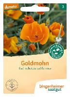 Einjährig. Zierliche Mohnart mit leuchtend gelben, weißen, roten und orangefarbenen Blüten. Feines blaugrünes, sehr dekoratives Laub. Zierliche, niedrige Mohnart mit weithin leuchtenden orangen und gelben Blüten und feinem blaugrünem, sehr dekorativem, filigranem Laub. Die becherförmigen Blüten öffnen sich erst richtig bei voller Sonne. Lockere, sandige, wasserdurchlässige Böden in vollsonniger Lage sind ideal. Sehr trockenheitsverträglich"TIPP": Aussaat auch im September möglich, blüht dann ab Ende Mai. Der Goldmohn sät sich in den folgenden Jahren wieder von selbst aus.
