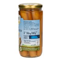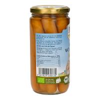 Die Verarbeitung des hochwertigen Bio-Fleisches und der geschmackvollen Bio-Gewürze erfolgt nach strengen Qualitätsrichtlinien. Auf Zusatzstoffe wie z.B. Nitritpökelsalz oder Phosphate verzichten wir aus Überzeugung. Die Würstchen sind in Eigenhaut, dies bedeutet, dass die Wurstmasse zu Beginn in einen Cellulosedarm gefüllt wird. Im Verlauf der Produktion mit dem Brühen und Räuchern bildet sich an der Oberfläche eine Eiweißschicht, der Darm wird vor dem Abfüllen in das Glas entfernt und fertig ist das Würstchen in zarter EIgenhaut.  Laktosefrei, Glutenfrei.