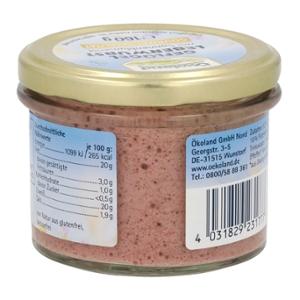 Die Ökoland Geflügel-Leberwurst ist eine Wurst-Spezialität aus reinem hochwertigem Bio-Geflügelfleisch und Bio-Geflügelleber in Gourmet-Qualität. Mit Sonnenblumenöl erhält sie die besonders feine und streichfähige Konsistenz. Die traditionellen Gewürze sorgen gemäß Hausmacher Art für den herzhaft-leckeren Geschmack. Im praktischen Zylinderglas leicht entnehmbar.